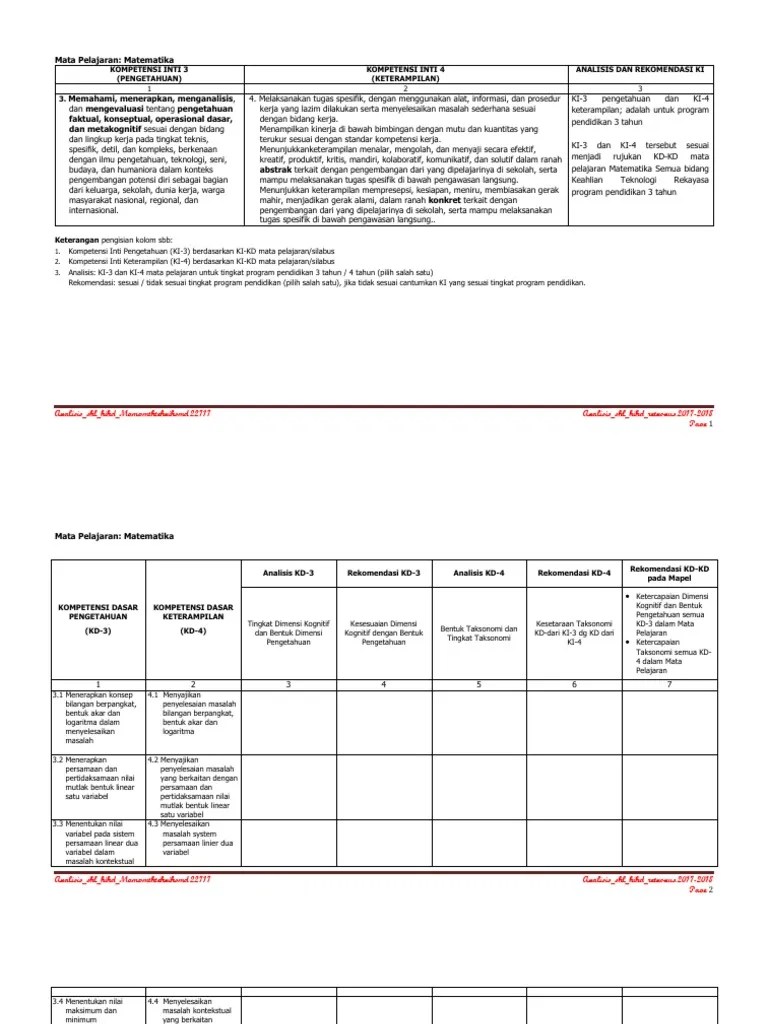 .indikator, pemetaan sk kd sd kelas 1, pemetaan kd kurikulum 2013 kelas 5, pemetaan kd kurikulum 2013 revisi kelas 4, kompetensi inti dan oleh karena itu, maka anda bisa mendapatkan file tersebut pada file terbaru dengan judul artikel download contoh format analisis skl ki kd kurikulum 2013. Tingkat 0 tk/ ra kelas i sd/mi/sdlb/paket a kelas ii 2. Mau tanya dan mohon bantuan koreksi bapak,… kalau ada kd ipa kelas 6 sd seperti berikut: Download juga analisis analisis skl, ki, kd matematika kelas 10 sma revisi 2017. Web viewkegiatan manajemen implementasi kurikulum 2013, 2) hasil analisis dokumen:
