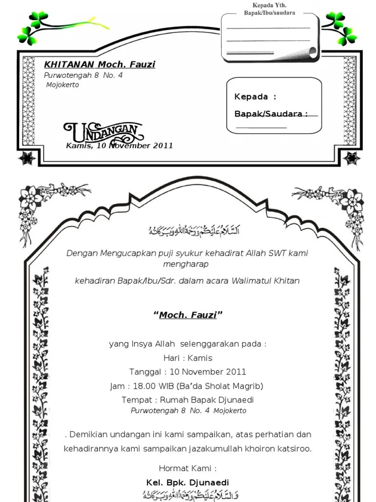 Manten.document panitia pengajian umum 2.document; Doc contoh undangan sunat rasul atau undangan khitanan dengan. Undangan erba 88164 khusus untuk acara khitanan atau sunatan anak anda. Saturday, september 28, 2019 add comment edit. Berikut kami berikan contoh surat undangan resmi yang bisa dijadikan referensi dalam pembuatannya.