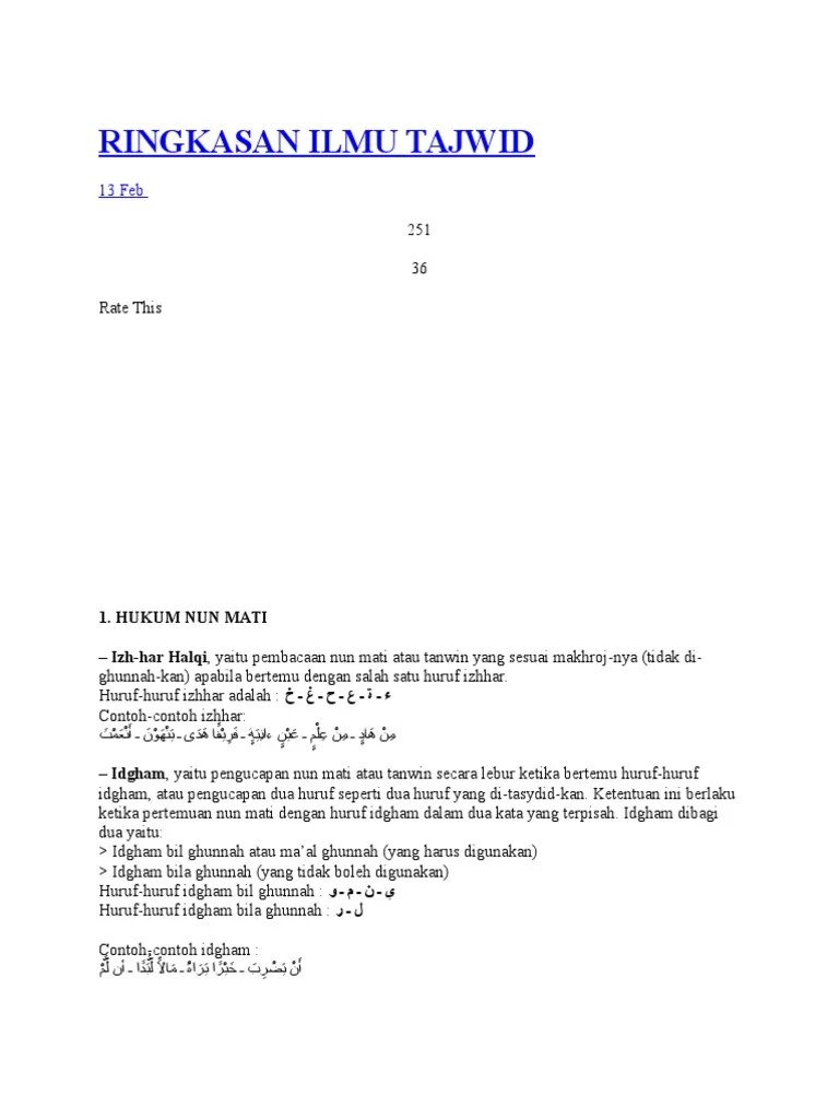 Adapun dalam ilmu tajwid, hukum dibagi menjadi 3 bagian: